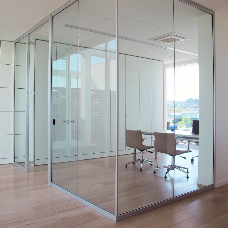 Sistemi di pareti scorrevoli e fisse in vetro: massima trasparenza, luce naturale e design contemporaneo per uffici e spazi direzionali.