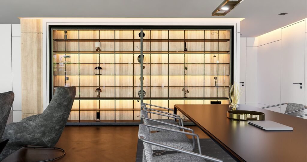Sono pareti interne non portanti, facilmente riconfigurabili, progettate per ottimizzare gli spazi di lavoro offrendo archiviazione ordinata, flessibilità distributiva e un’estetica coordinata con l’arredo dell’ufficio.